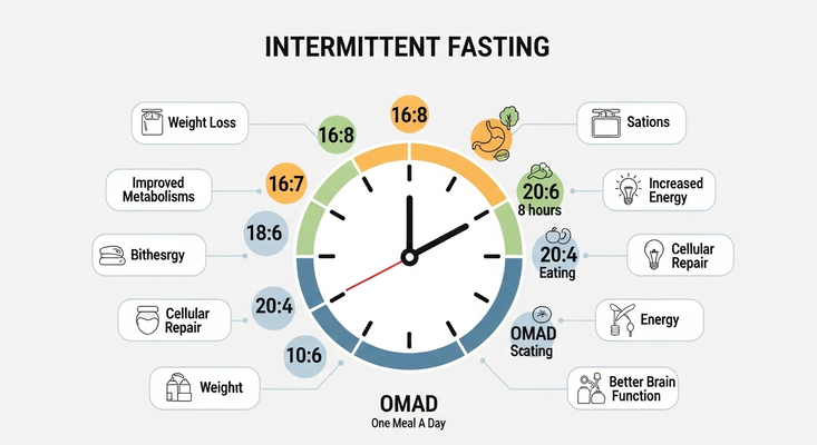 Tránh ăn vặt liên tục; giảm số bữa ăn trong ngày (ví dụ 2–3 bữa chính, không snack), tạo khoảng nghỉ cho insulin hạ xuống.
